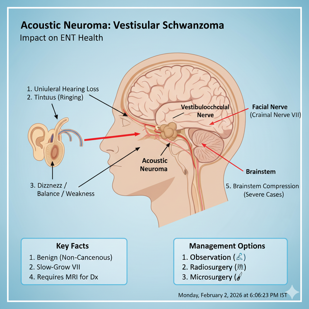 Acoustic Neuromas are benign tumors on the hearing and balance nerve. Early signs include one-sided hearing loss and tinnitus. Our specialists provide...