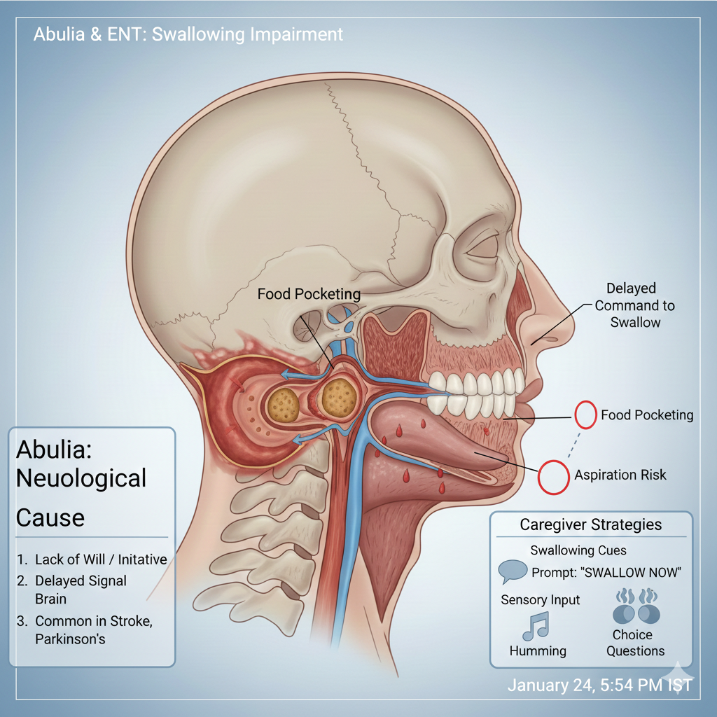 Abulia hinders the brain's drive to speak and swallow, increasing risks for food pocketing and aspiration. Discover how specialized ENT strategies and...