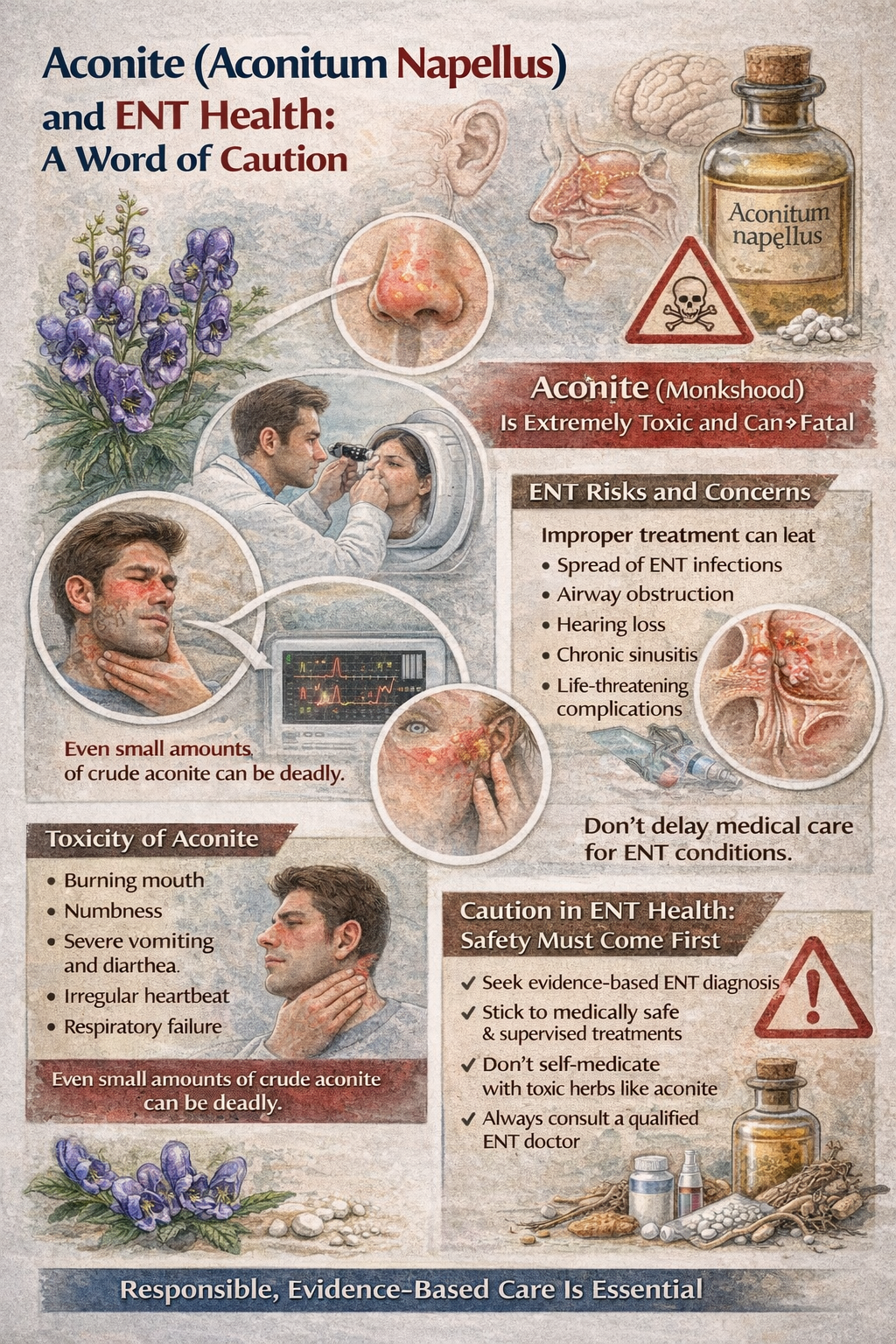 Aconite is used traditionally for sudden ENT symptoms like earaches and sore throats. However, due to its extreme toxicity, it must be handled with ca...